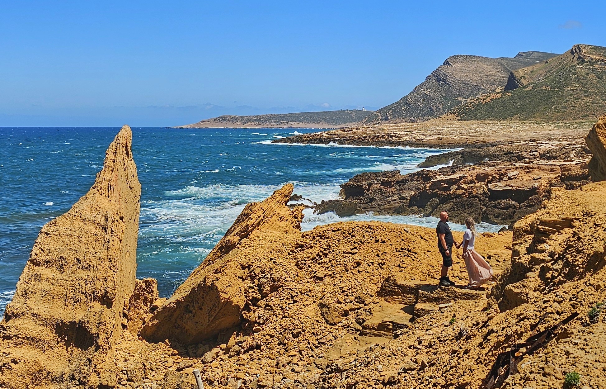 Czyli dobry przylądek (z arabskiego,) zarówno od strony Zatoki Tuniskiej, jak i Zatoki Hammamet to widoki jak z bajki Po obu stronach półwyspu widzieliśmy jedne z najpiękniejszych i najczystszych plaż Tunezji ciągnące się kilometrami bialusieńkim piaskiem, a kolory wody to kompletny sztos. Stada flamingów i wyjątkowo mało turystów, spokój, cisza i mnóstwo zieleni. Od strony Tunisu przepiękne skaliste wybrzeże, góry i formacje skalne. Oprócz objechania całego półwyspu polecamy przede wszystkim: jaskinie w dawnym kamieniołomie El Haouaria, oraz gorące źródła Korbus, które wypływają bezpośrednio do morza, ta dwa miejsca, jak i ich okolice oczarowały nas najbardziej na półwyspie. Jeśli do Tunezji nad morze to na Cap Bone polecamy najbardziej!