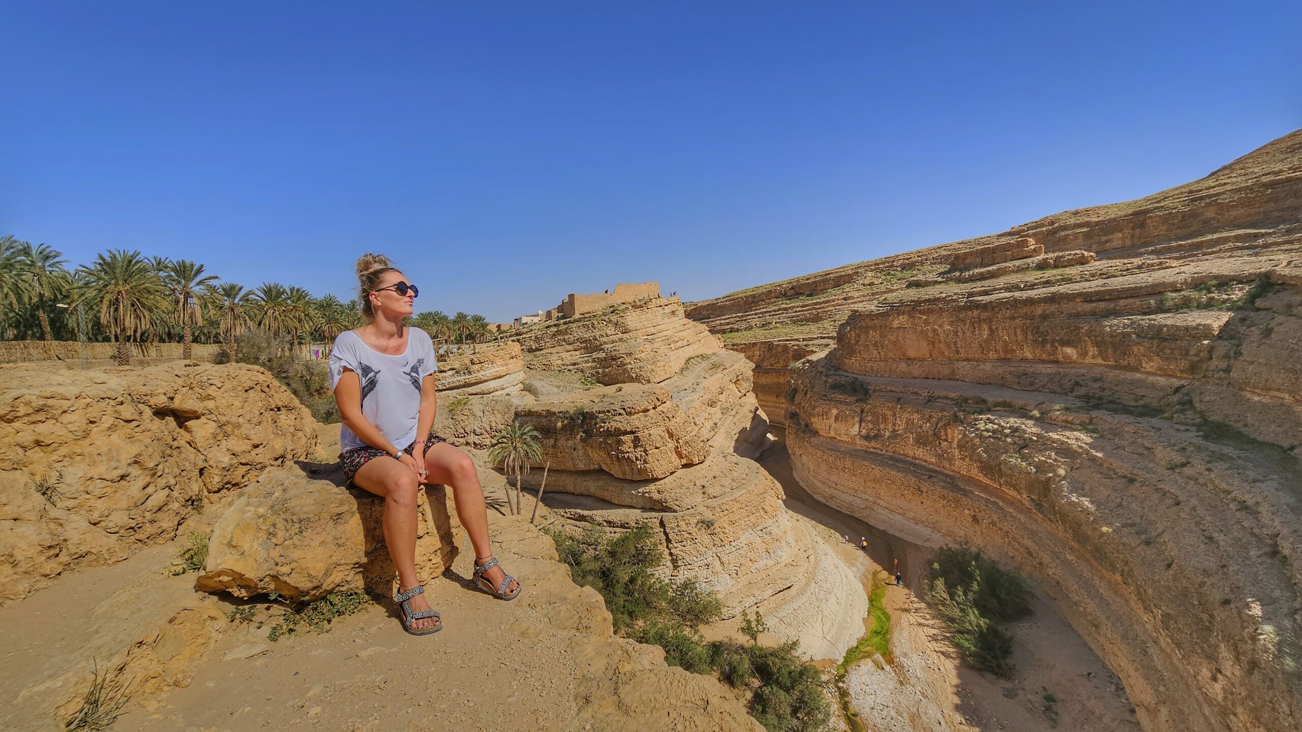 W tej miejscowości kryje się najpiękniejszy kanion jaki widzieliśmy w Tunezji, wąwóz Tamaghza. Byliśmy tam kompletnie sami z przewodnikiem. Zresztą gdyby nie on, nie wiedzielibyśmy o jego istnieniu, bo naszym celem było miasto i oaza z wodospadem… Przynajmniej tak wskazywała nam mapa. I wodospad był ale po zobaczeniu poprzednich na naszej trasie bez fajerwerków. Gdyby lokals nas nie zaczepił, a my nie podjęlibyśmy wyzwania, w życiu byśmy nie zobaczyli najwspanialszych części tego wąwozu. Tu dociera mniej turystów niż do Chebiki, a miejsce bardziej jest popularne wśród lokalsów, którzy uważają, że to Tamaghza jest najpiękniejszą oazą w Tunezji. Naszym zdaniem mają rację, kanion nas oczarował.